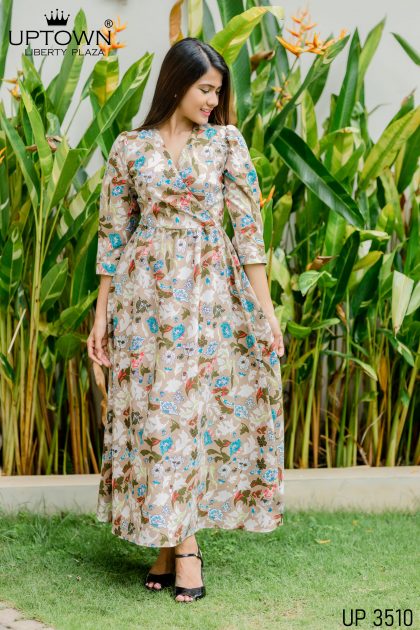 UP 3510 - UPTOWN FLORAL SURPLICE NECK DRESS