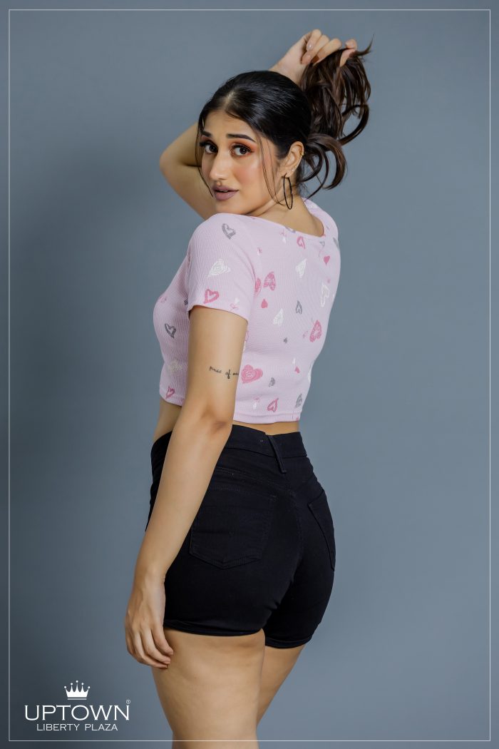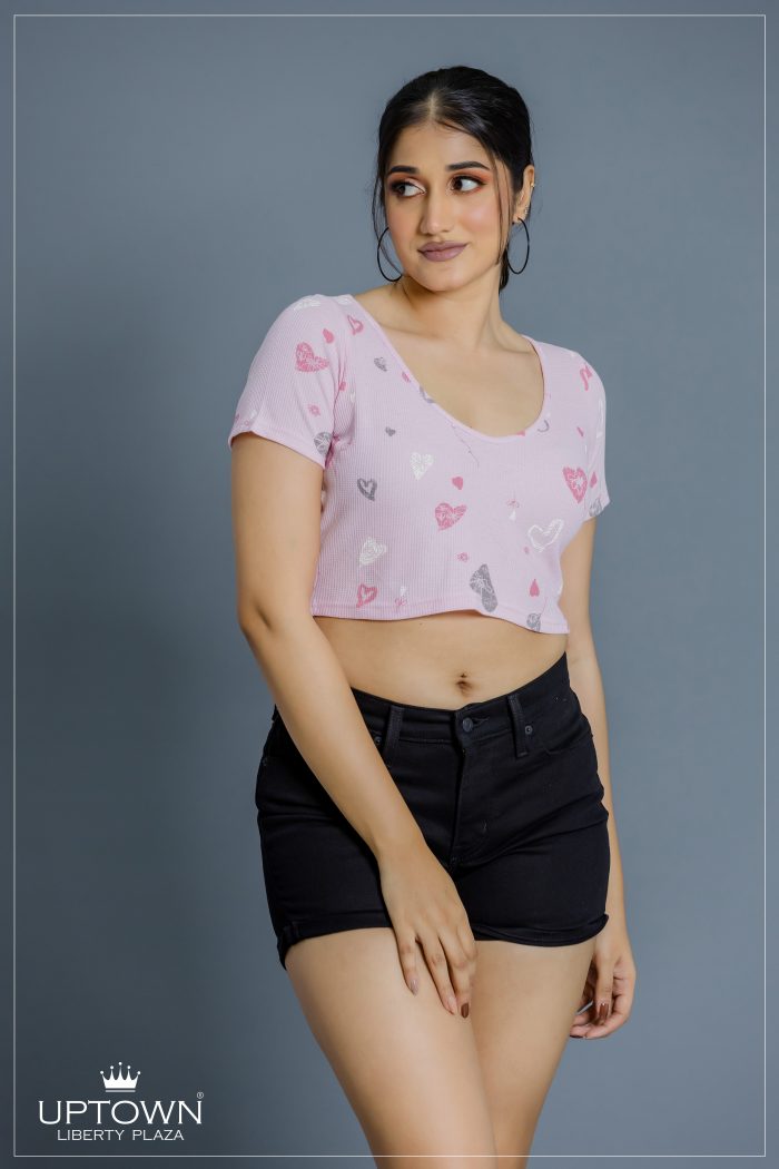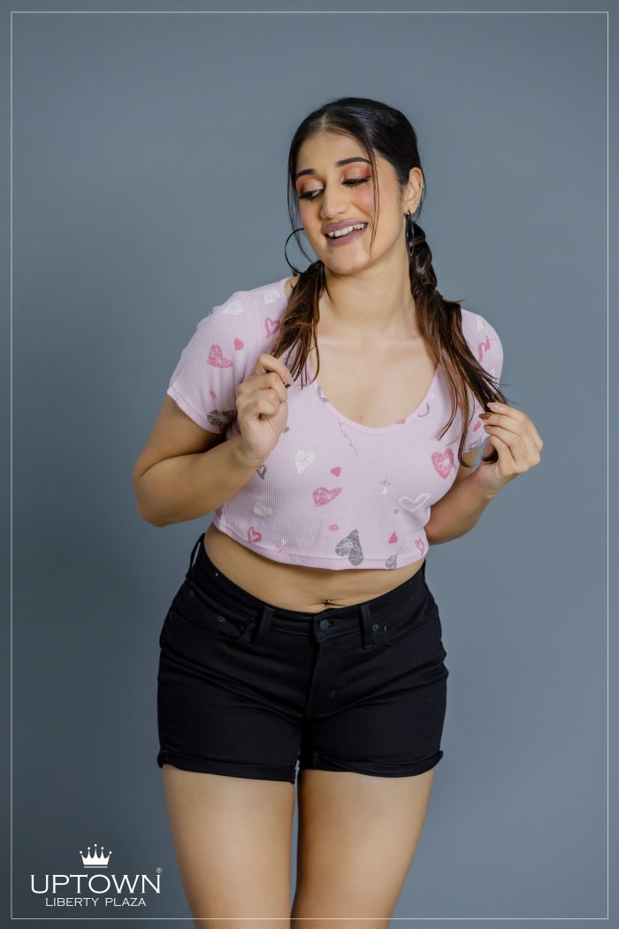 UP 4460 - TEE LOVE PINKY HEART PRINT CROP TOP